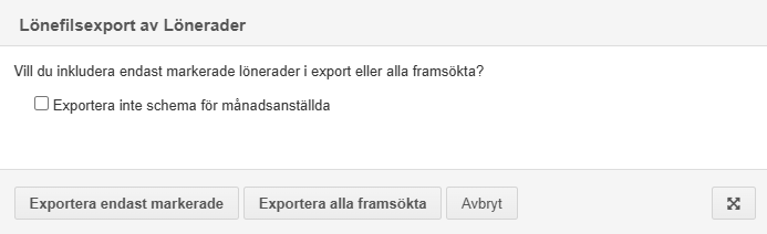 När Visma är satt som lönesystem i systeminställningarna, fås ett alternativ när en exportfil skapas; "Exportera inte schema för månadsanställda".